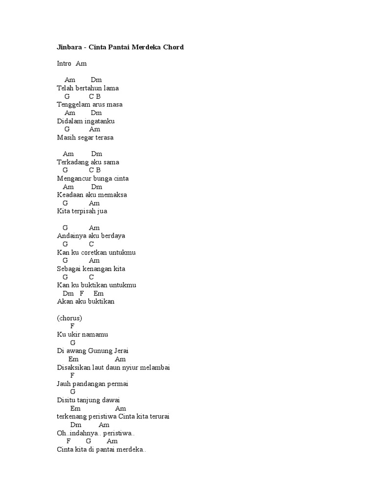 Cinta Pantai Merdeka Lirik Chords Chordify